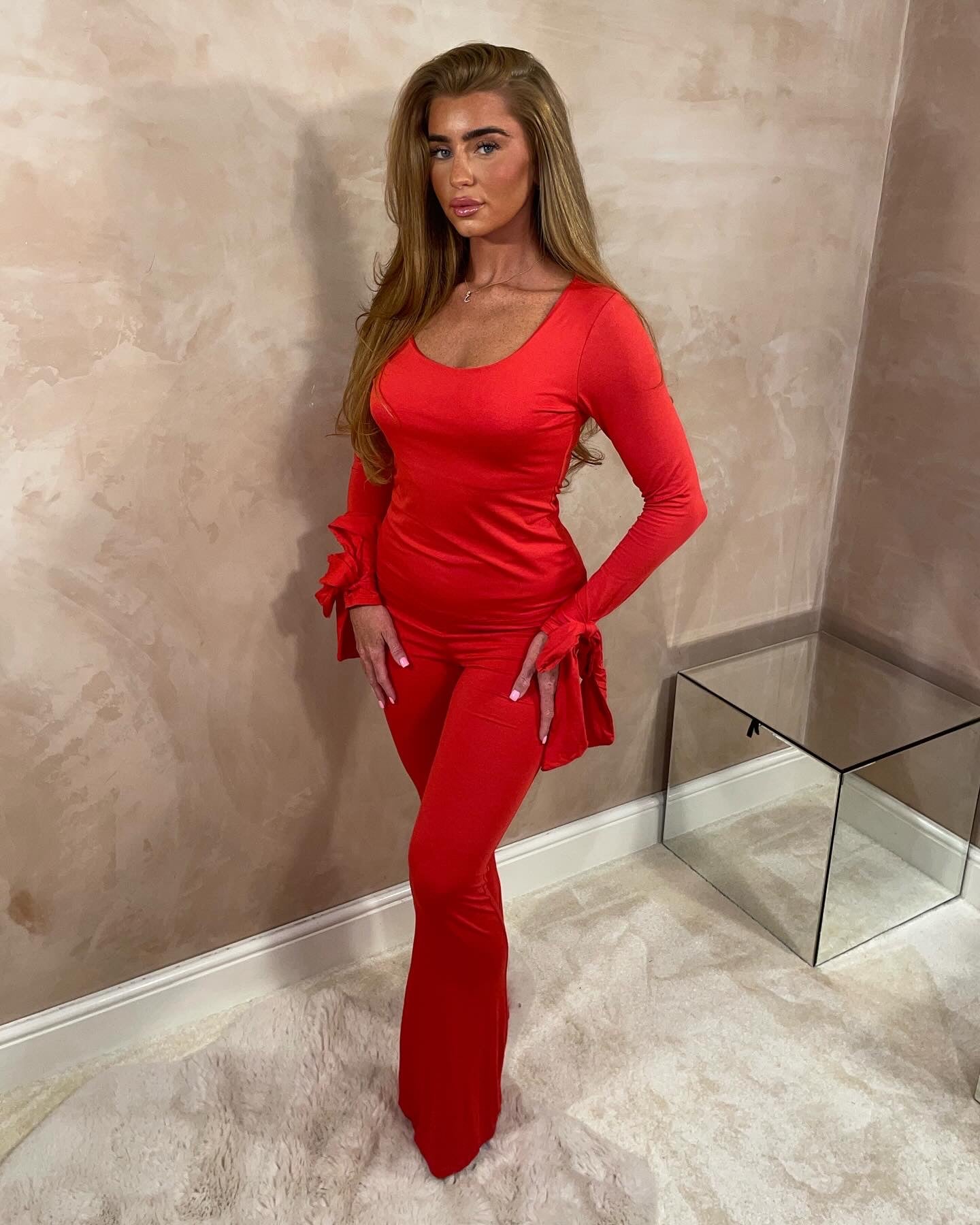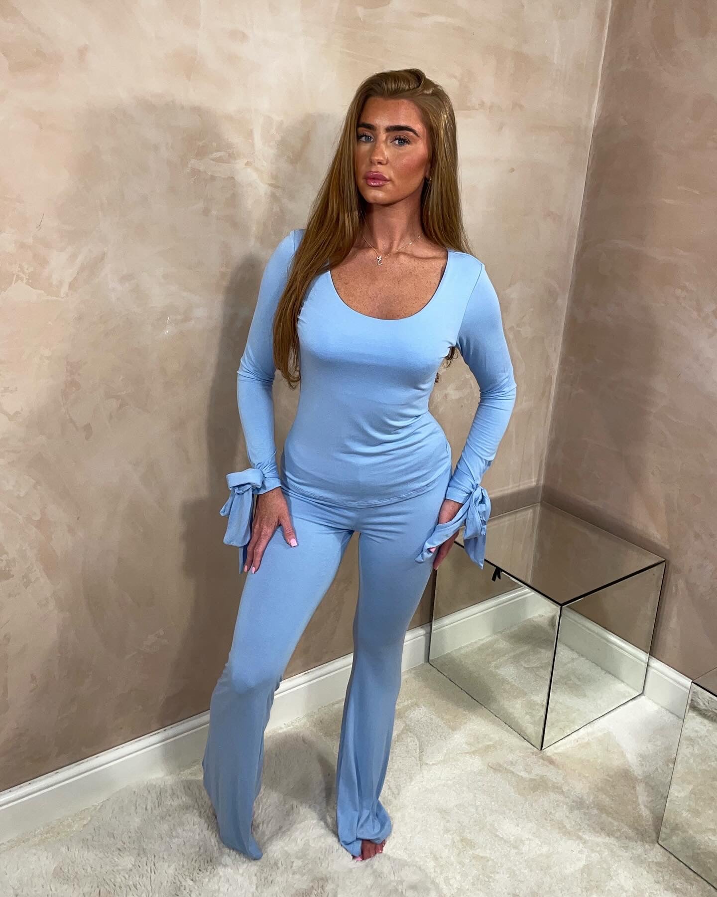 Lovely, soft material with bow detailing on the sleeve & matching flared trousers